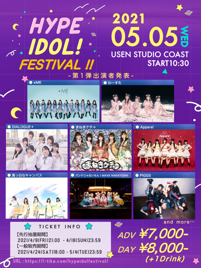 Appare! / ≠ME / DIALOGUE+ / バンドじゃないもん!MAXX NAKAYOSHI / PIGGS / まねきケチャ / 真っ白なキャンバス / わーすた (名前順/敬称略) and more…