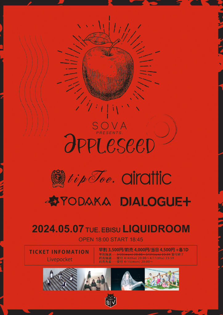 24年5月7日(火) SOVA presents 「APPLESEED」出演決定!