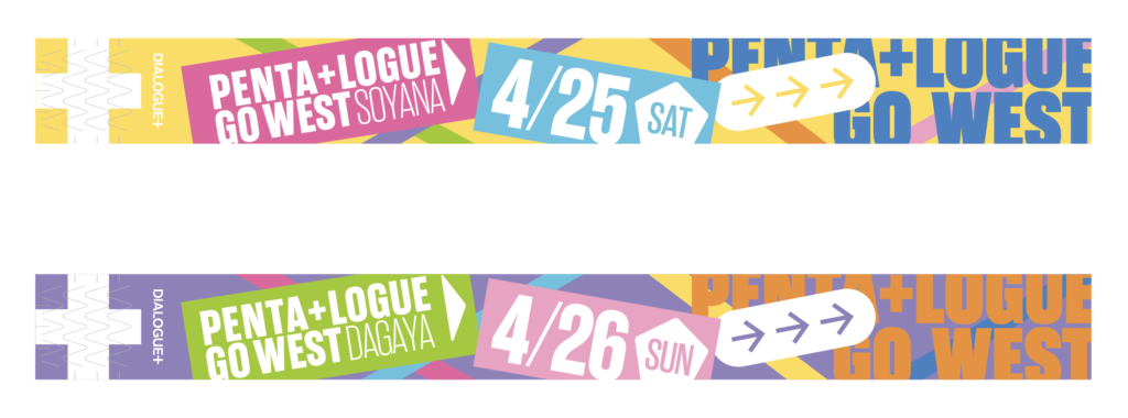 ※「PENTA+LOGUE GO WEST ~そやな編~」「PENTA+LOGUE GO WEST ~だがや編~」各公演会場内の「セットリストトレカ引き換えブース」にて、【1部終演後退場時】にリストバンドをご提示いただいた方を対象に特典をお渡しいたします。