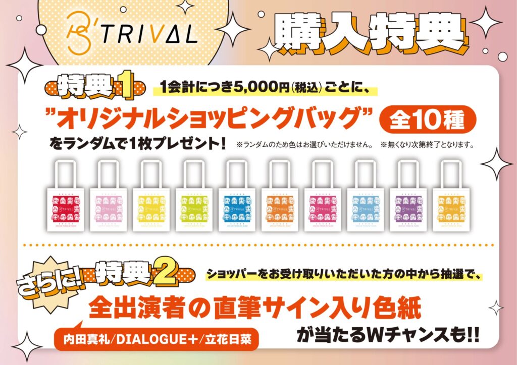 さらに、ショッパーをお受け取りいただいた方の中から抽選で、全出演者(内田真礼/DIALOGUE+/立花日菜)の直筆サイン入り色紙が当たるWチャンスも!!