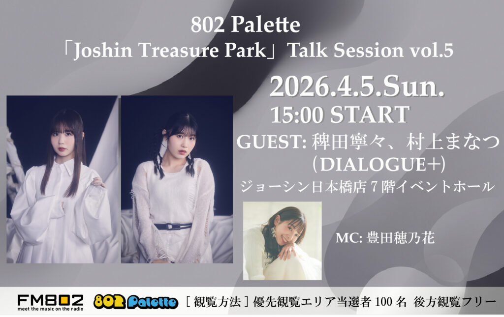 802 Paletteの番組内コーナー「Joshin Treasure Park」のトークセッション第5弾に稗田寧々、村上まなつの出演が決定しました!